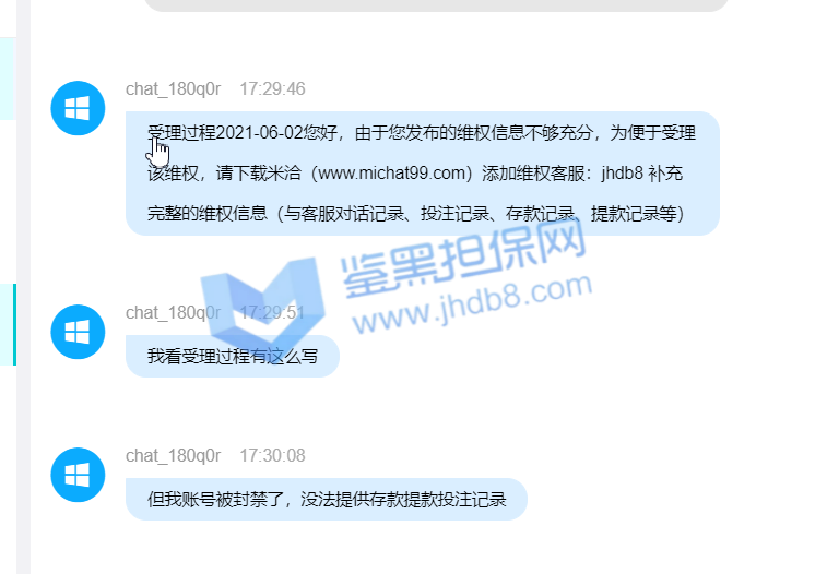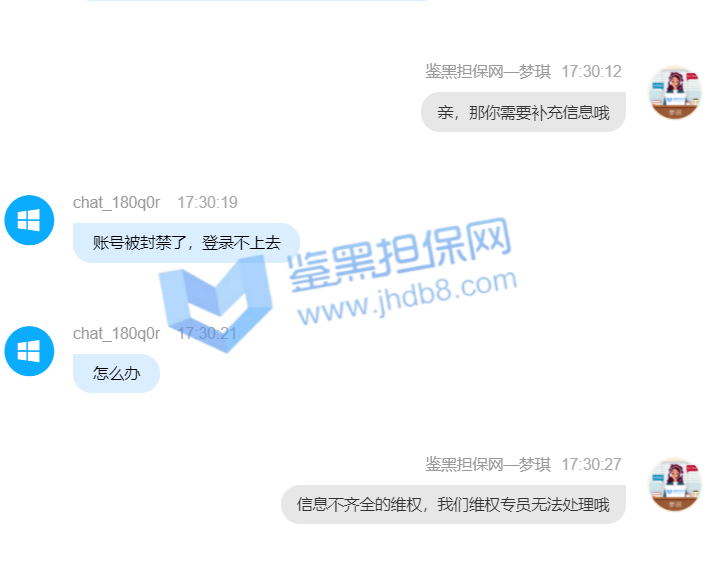 3.用户提交维权申请后资料不齐全,需在一周内补齐鉴黑担保网客服要求的资料,若超过一周时间没有完善维权信息,维权将因资料不全拒绝受理;