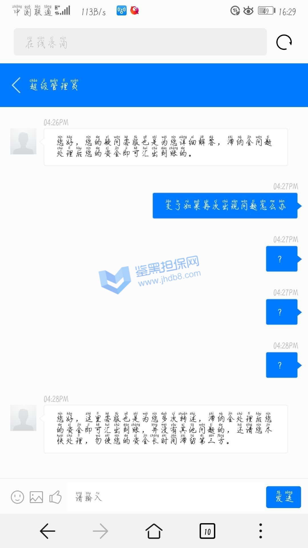 4.用户提交维权需为本人提交,若代替让人发布维权鉴黑担保网将拒绝受理;