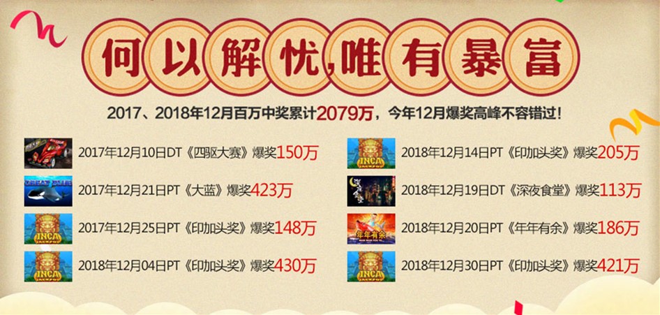 2017年12月龙8诞生3名百万富翁,累计爆奖721万7978.86元 !!